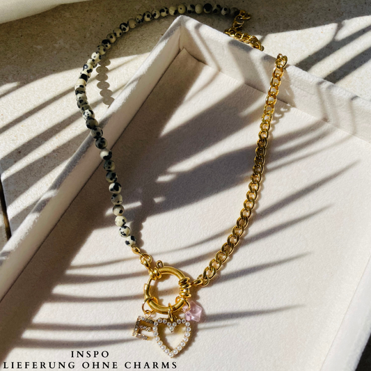 Edelstahl Kette "Dalmatiner Jaspis Gold" handgemacht
