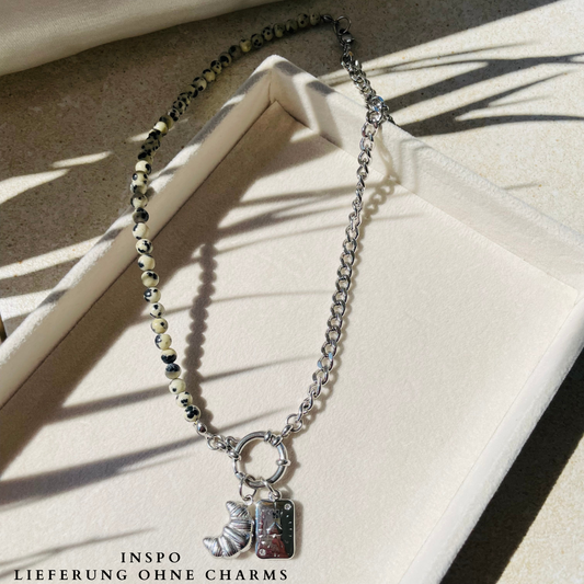 Edelstahl Kette "Dalmatiner Jaspis Silber" handgemacht