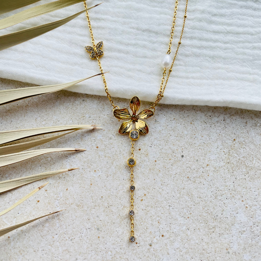Edelstahl Kette "Fleur Gold" 14K vergoldet