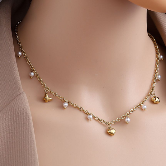 Edelstahl Kette "Akamai Gold" mit veganen Perlen