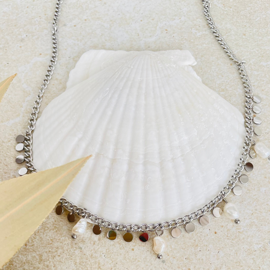 Edelstahl Kette "Ella Silber" mit Süßwasserperlen