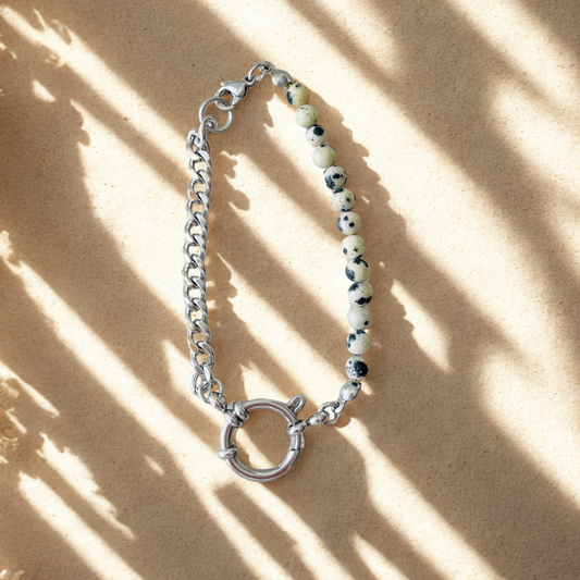 Edelstahl Armband "Dalmatiner Jaspis Silber" handgemacht