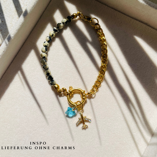 Edelstahl Armband "Dalmatiner Jaspis Gold" handgemacht