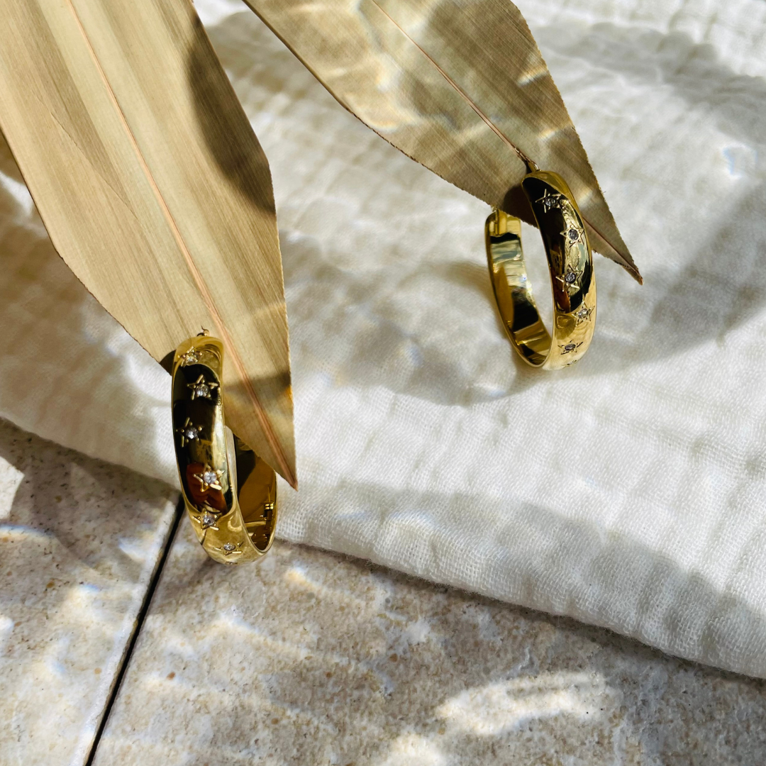 Edelstahl Creolen "Nightsky Gold" 14K vergoldet